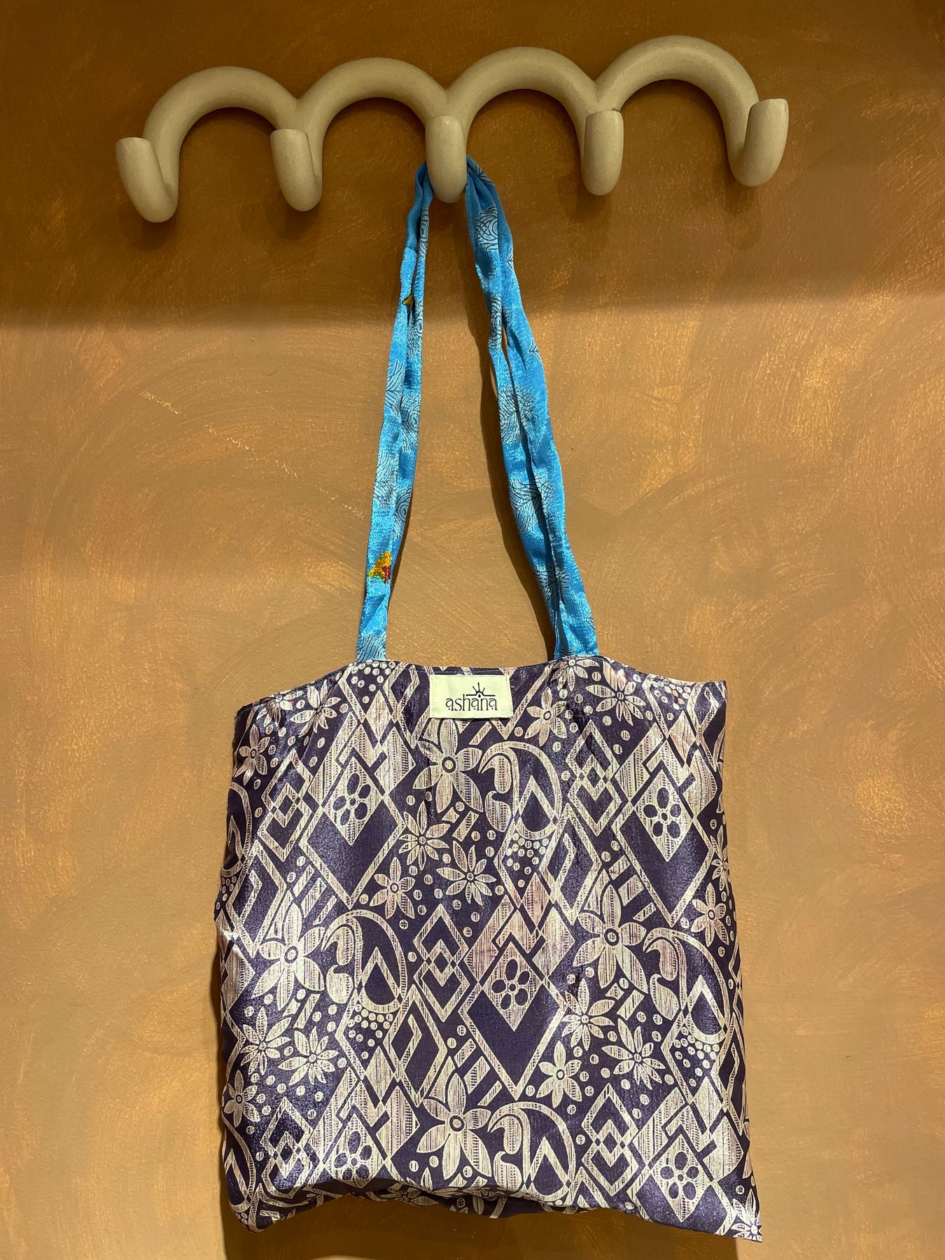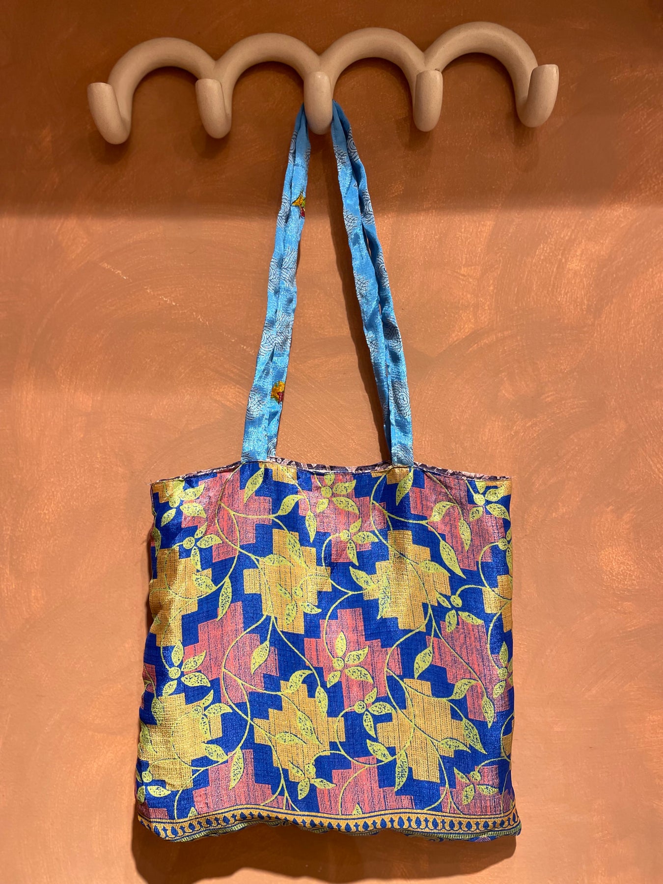 Our reversible silk bag are made with colorful patterns in 100 % silk. Each piece is unique and handcrafted with recycled silks.