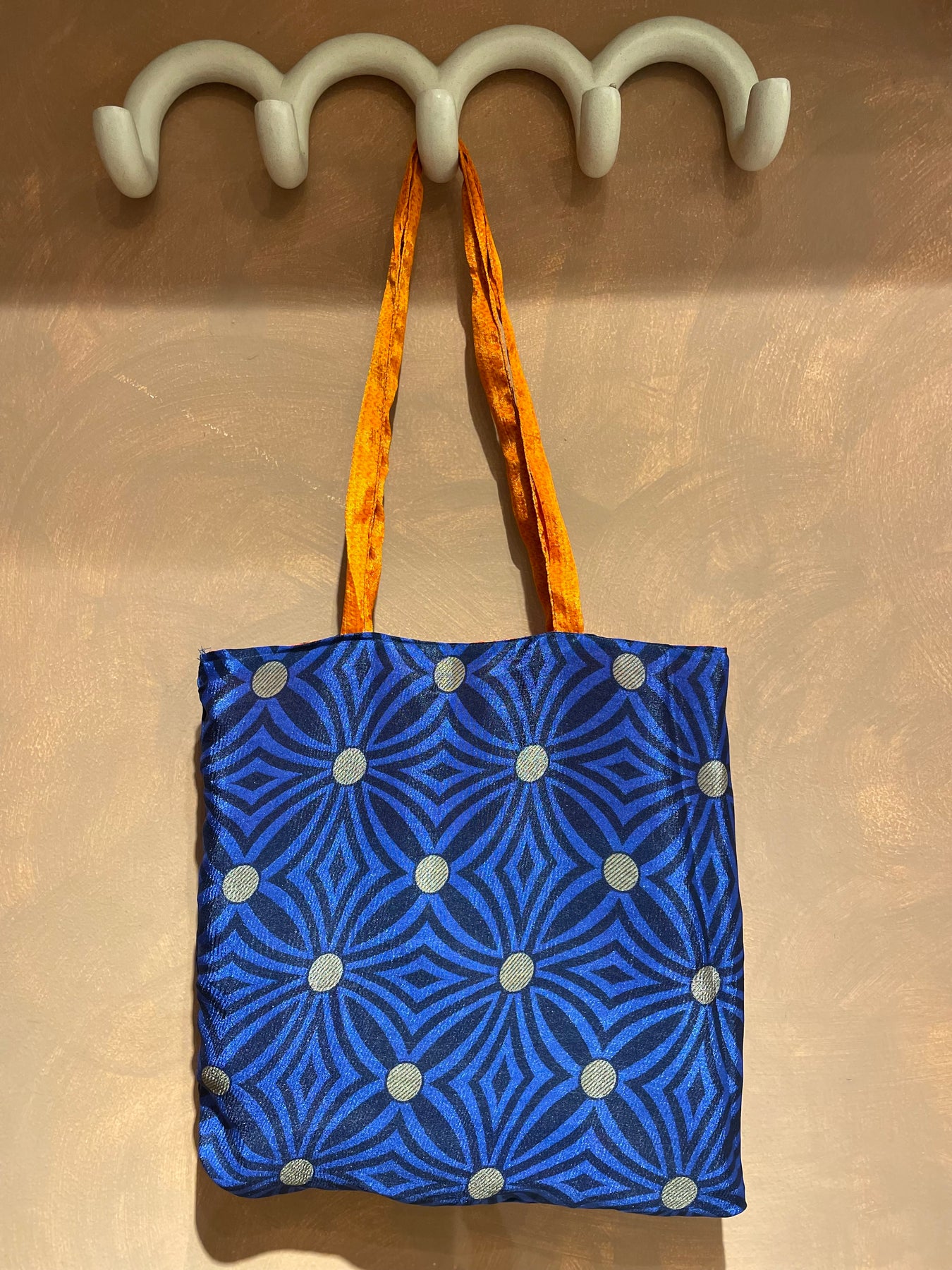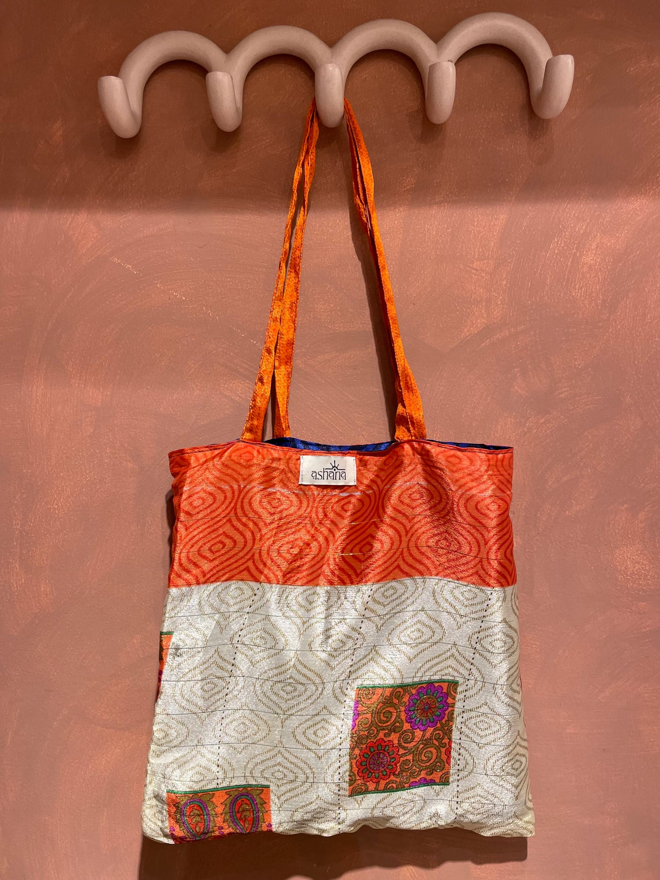 Our reversible silk bag are made with colorful patterns in 100 % silk. Each piece is unique and handcrafted with recycled silks.