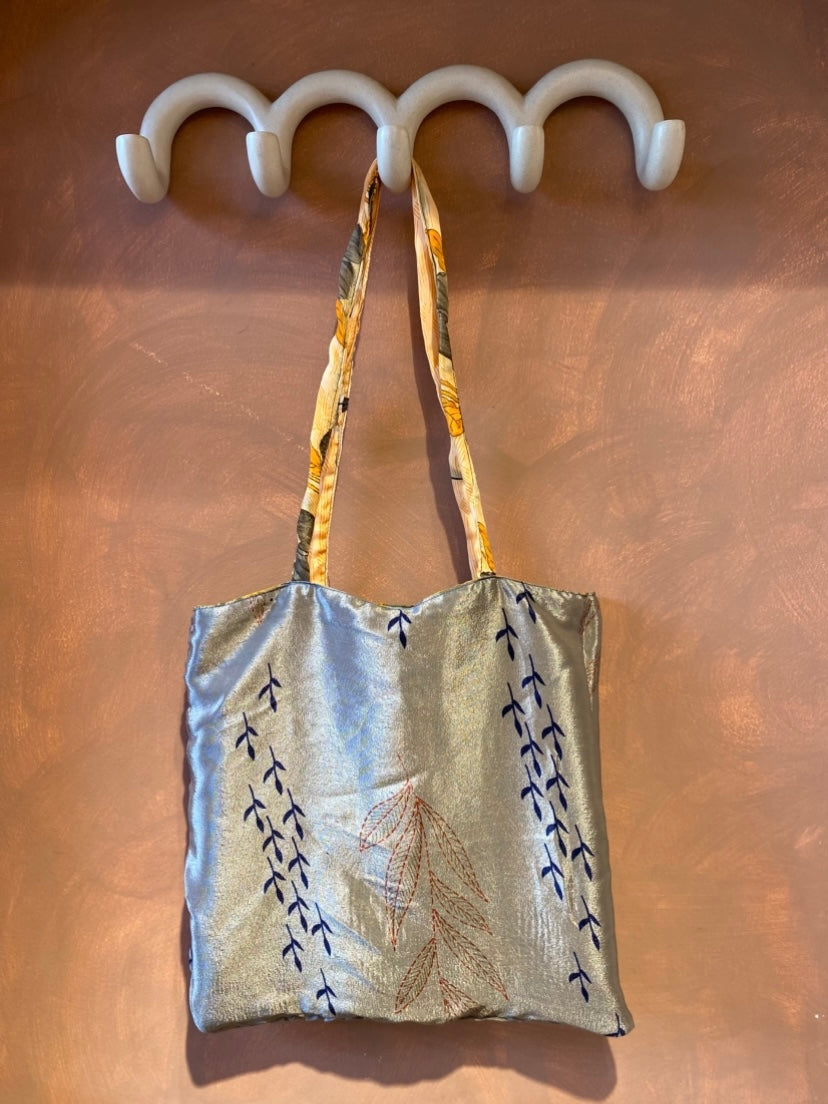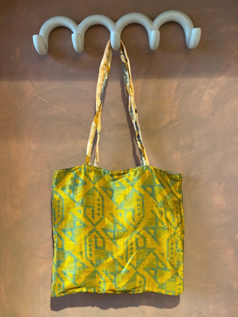 Our reversible silk bag are made with colorful patterns in 100 % silk. Each piece is unique and handcrafted with recycled silks.