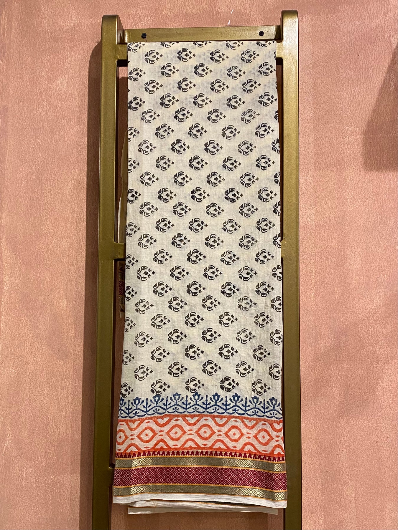 Elegant and refined 100% Cotton Pareos made with gold hand block prints and Gold Silk Embroidered patterns.