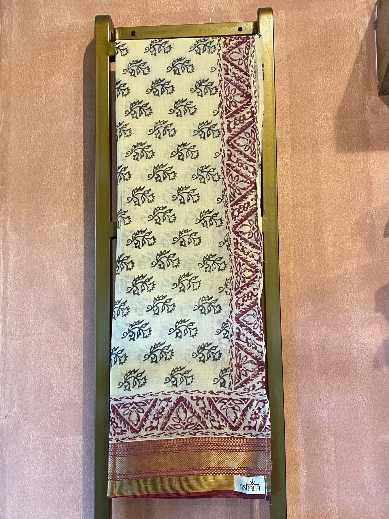 Elegant and refined 100% Cotton Pareos made with gold hand block prints and Gold Silk Embroidered patterns.