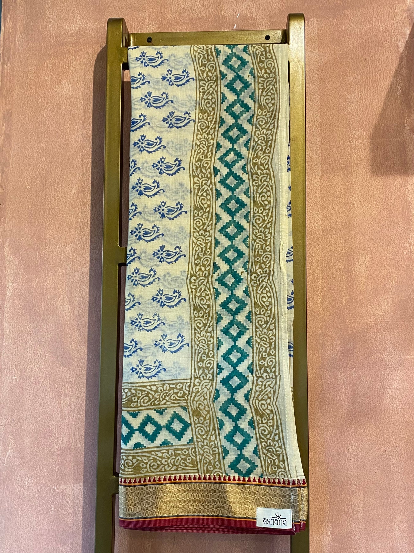 Elegant and refined 100% Cotton Pareos made with gold hand block prints and Gold Silk Embroidered patterns.