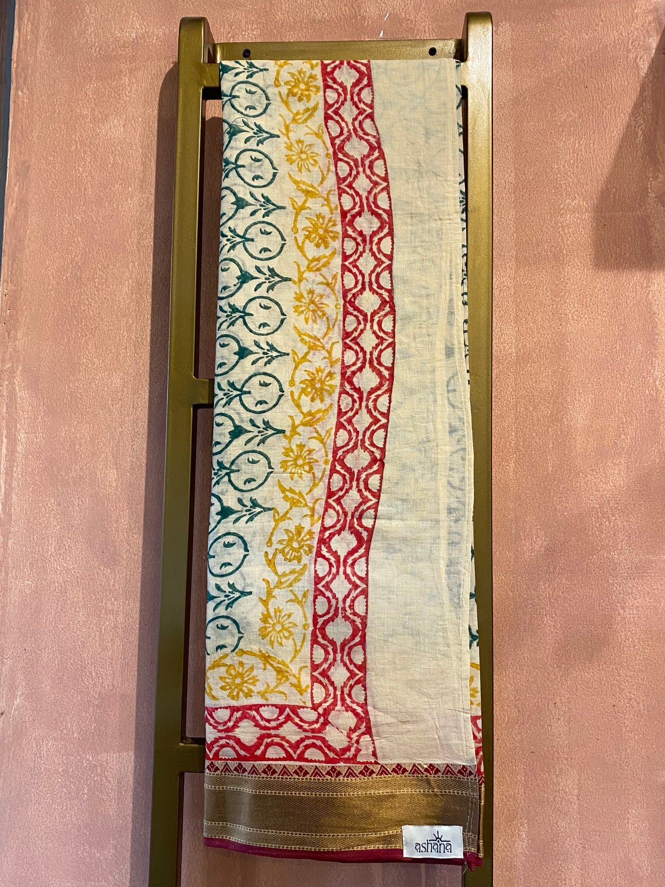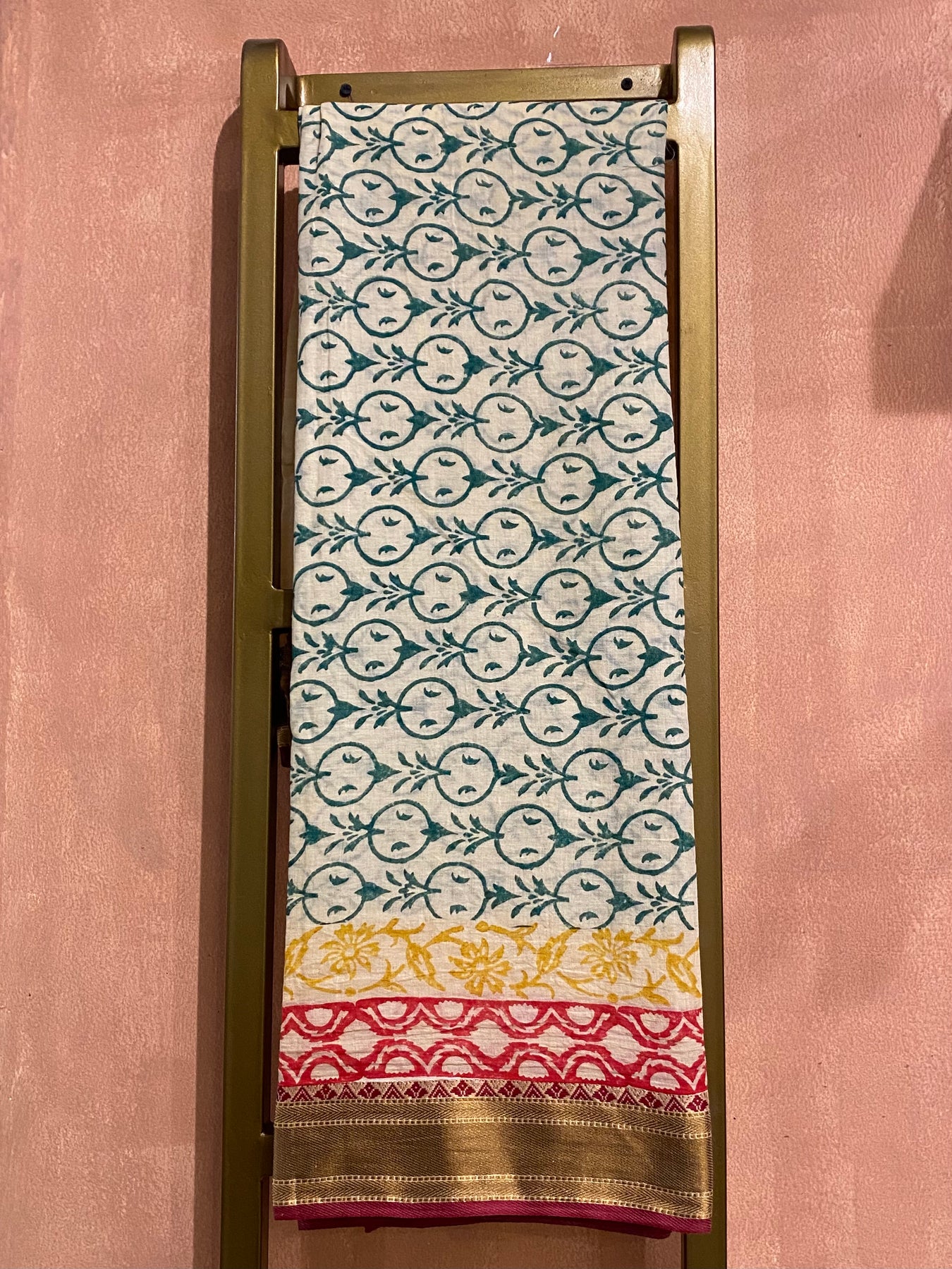 Elegant and refined 100% Cotton Pareos made with gold hand block prints and Gold Silk Embroidered patterns.