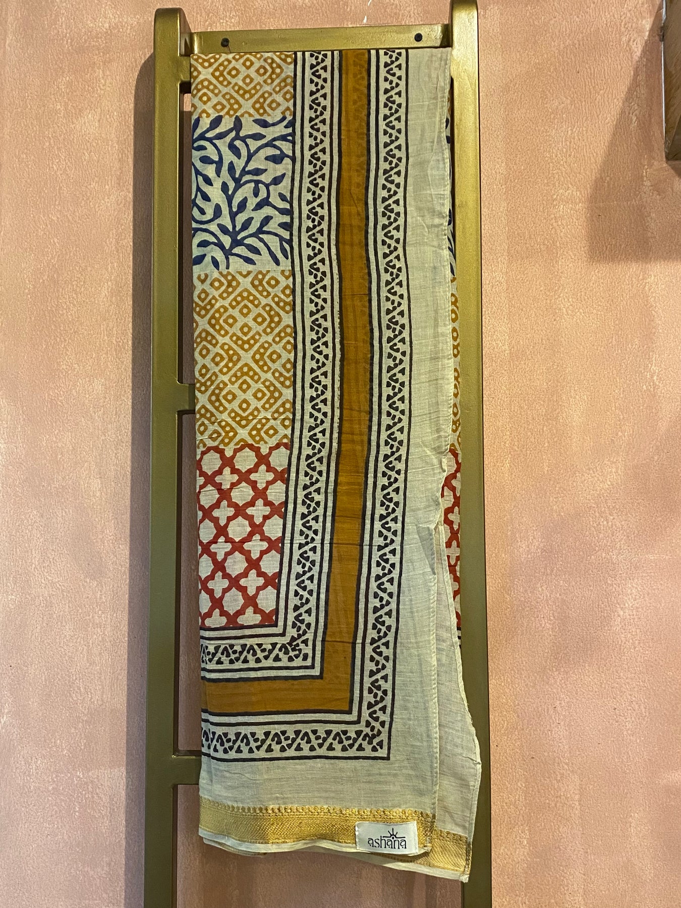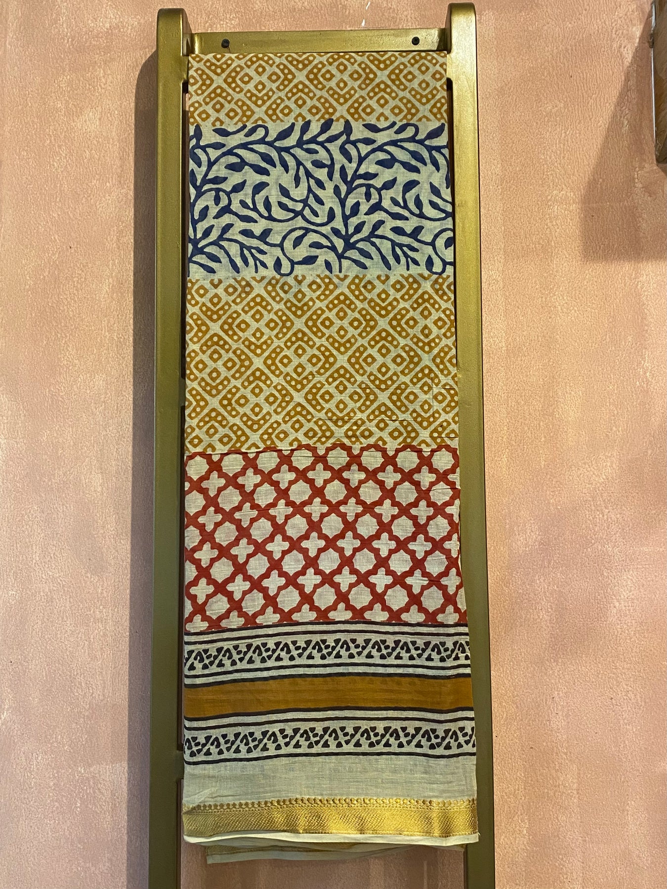 Elegant and refined 100% Cotton Pareos made with gold hand block prints and Gold Silk Embroidered patterns.