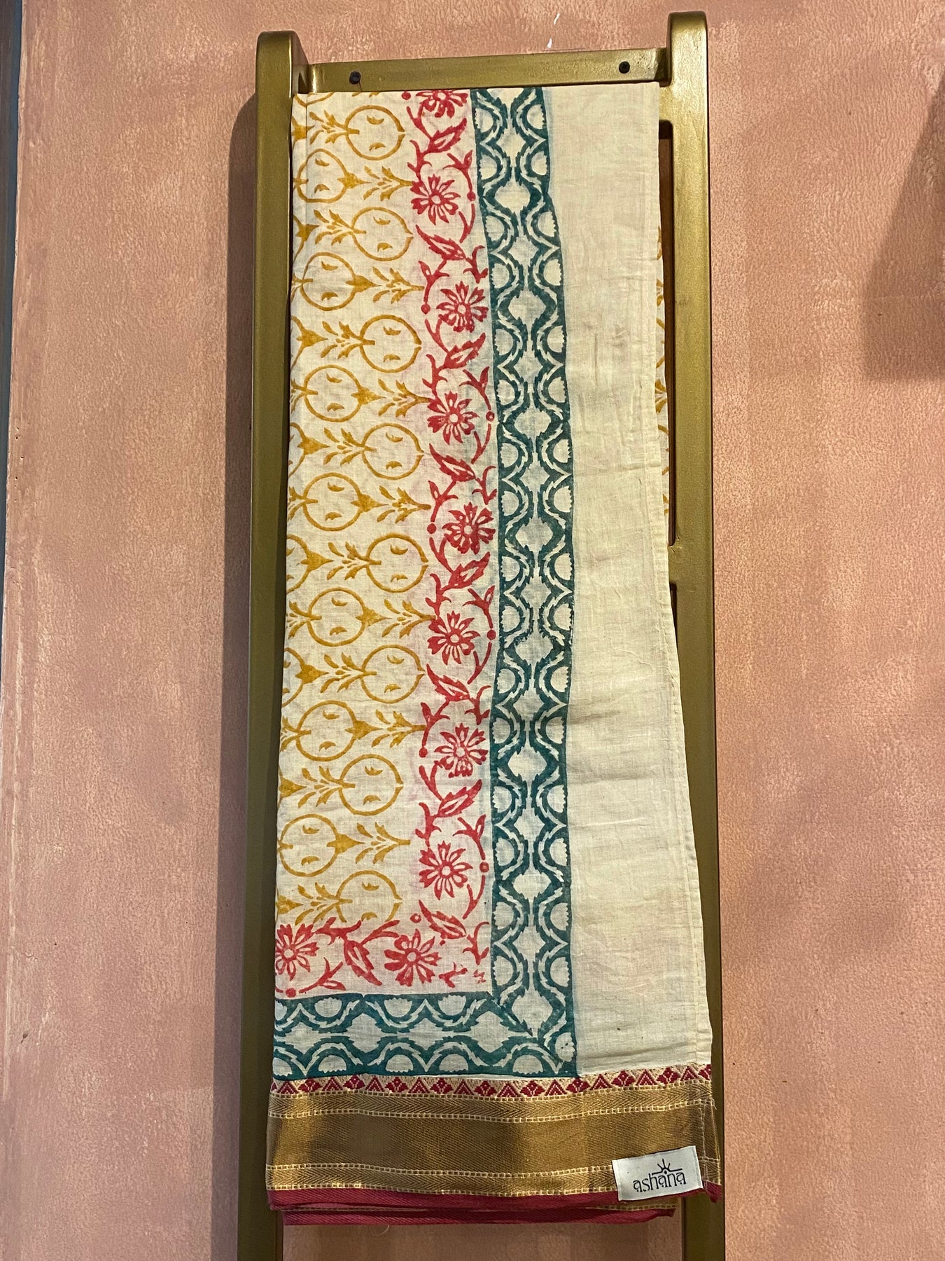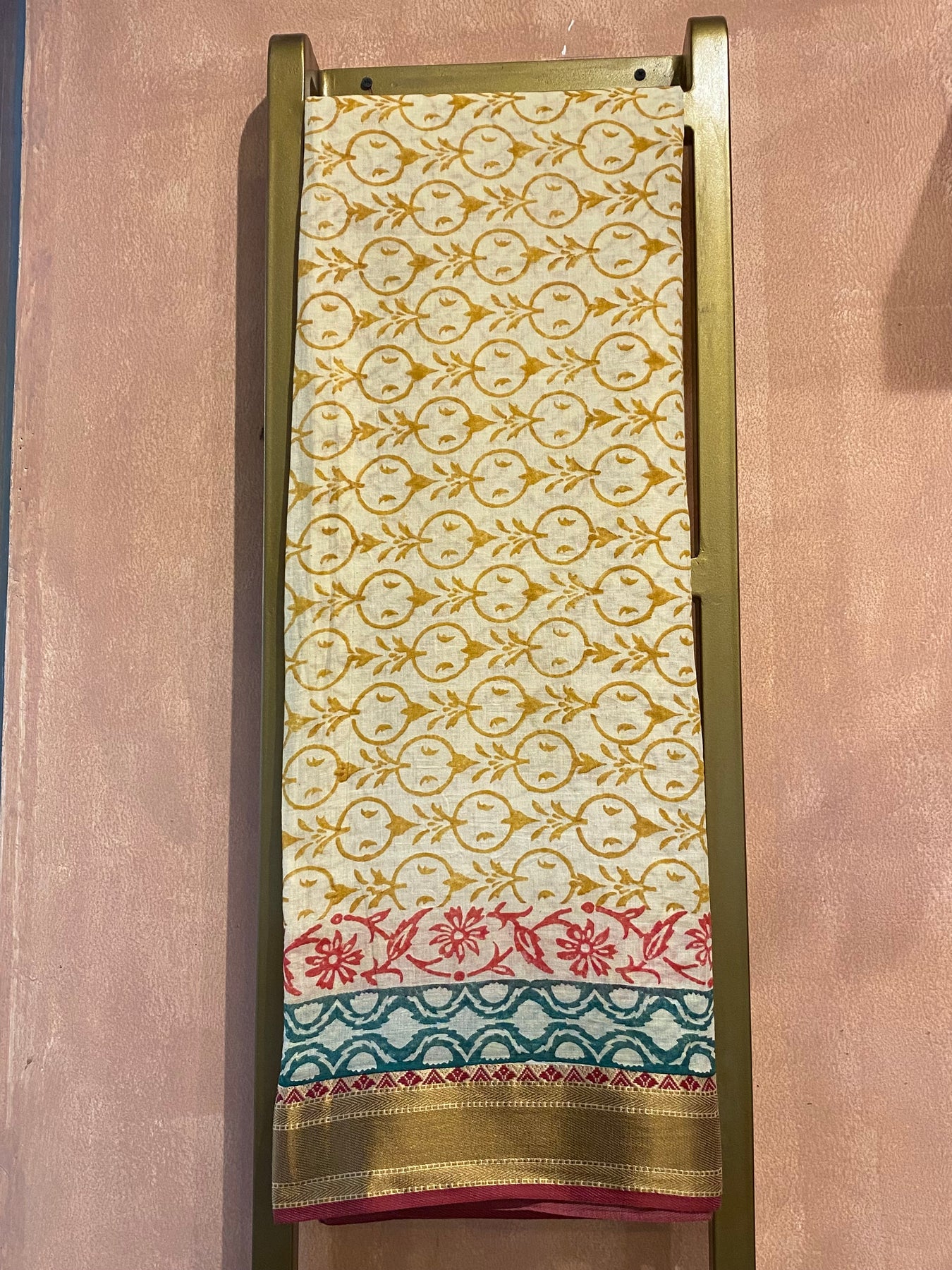 Elegant and refined 100% Cotton Pareos made with gold hand block prints and Gold Silk Embroidered patterns.
