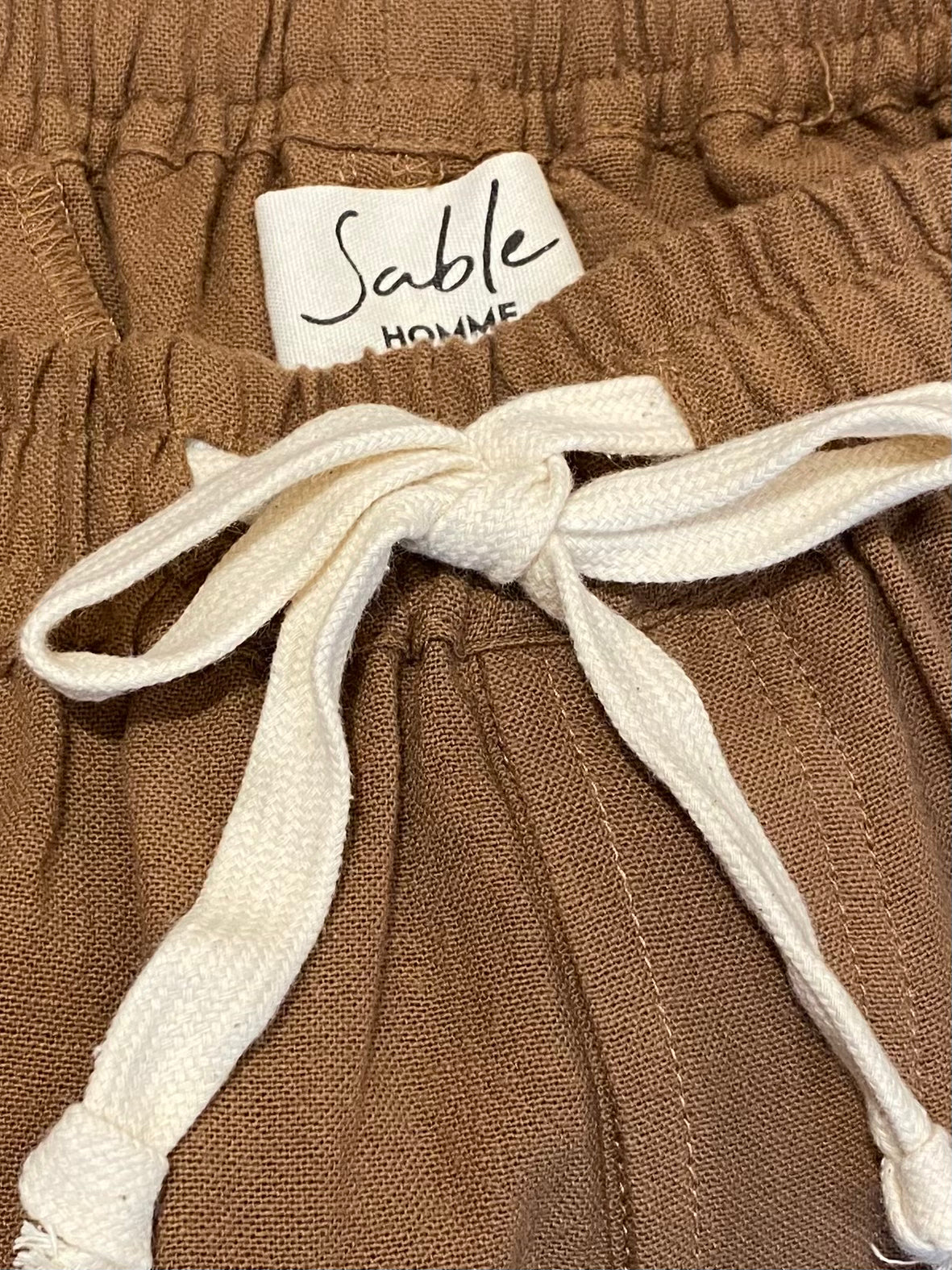 The Tabu shorts are crafted from a delicate, lightweight, and super comfortable linen and cotton fabric. It is adjustable at the waist with a rope.