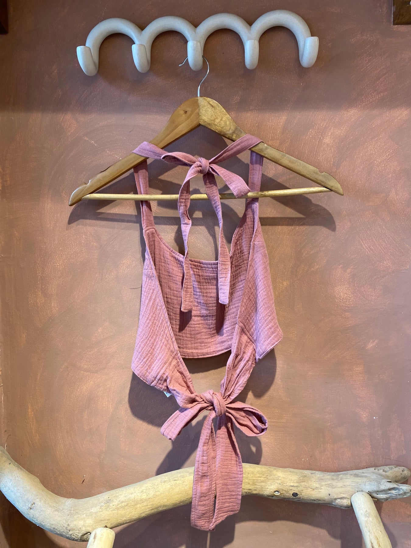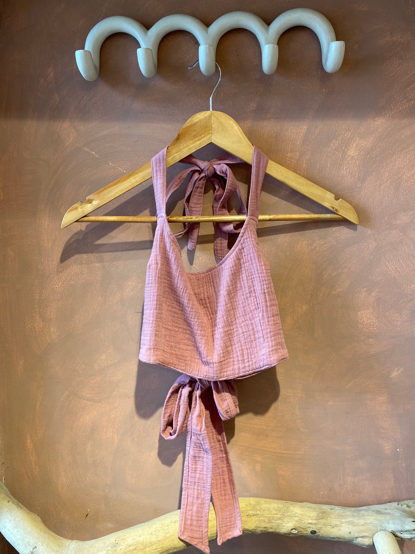 Mini top made of a light cotton fabric adjustable in the neck and the back with bands. The Elio top is easy to wear and can match with any color of our skirts and pants collection.